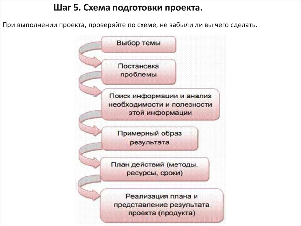 Шаг 5. Схема подготовки проекта.При выполнении проекта, проверяйте по схеме, не забыли ли вы чего сделать.