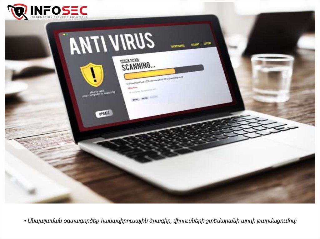 • Անպայաման օգտագործեք հակավիրուսային ծրագիր, վիրուսների շտեմարանի արդի թարմացումով:12.