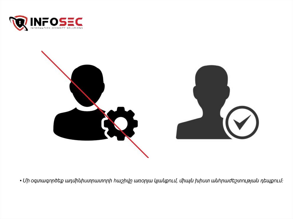 • Մի օգտագործեք ադմինիստրատորի հաշիվը առօրյա կյանքում, միայն խիստ անհրաժեշտության դեպքում:13.