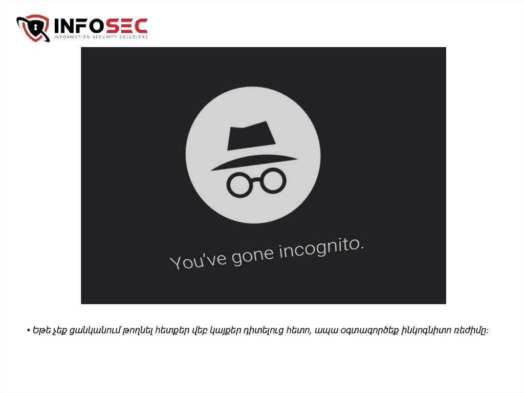 • Եթե չեք ցանկանում թողնել հետքեր վեբ կայքեր դիտելուց հետո, ապա օգտագործեք ինկոգնիտո ռեժիմը:28.