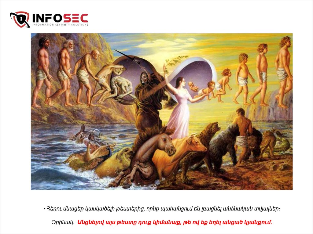 • Հեռու մնացեք կասկածելի թեստերից, որնք պահանջում են լռացնել անձնական տվյալներ:Օրինակ. Անցնելով այս թեստը դուք կիմանաք, թե ով եք եղել անցած կյանքում.