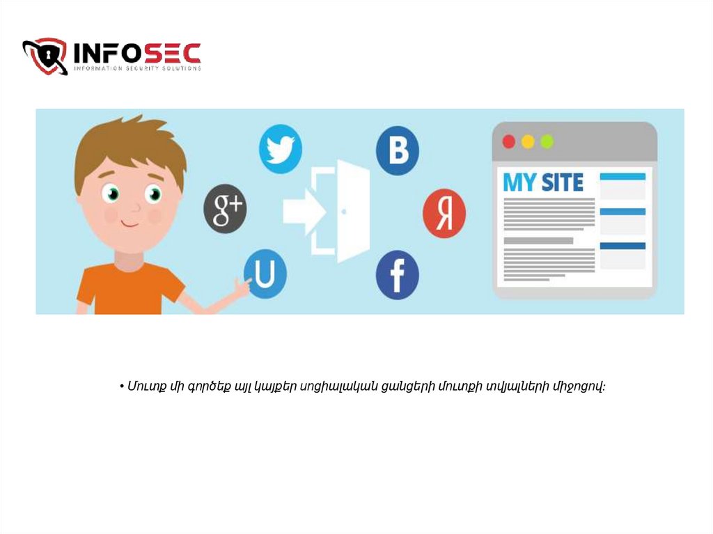 • Մուտք մի գործեք այլ կայքեր սոցիալական ցանցերի մուտքի տվյալների միջոցով:36.