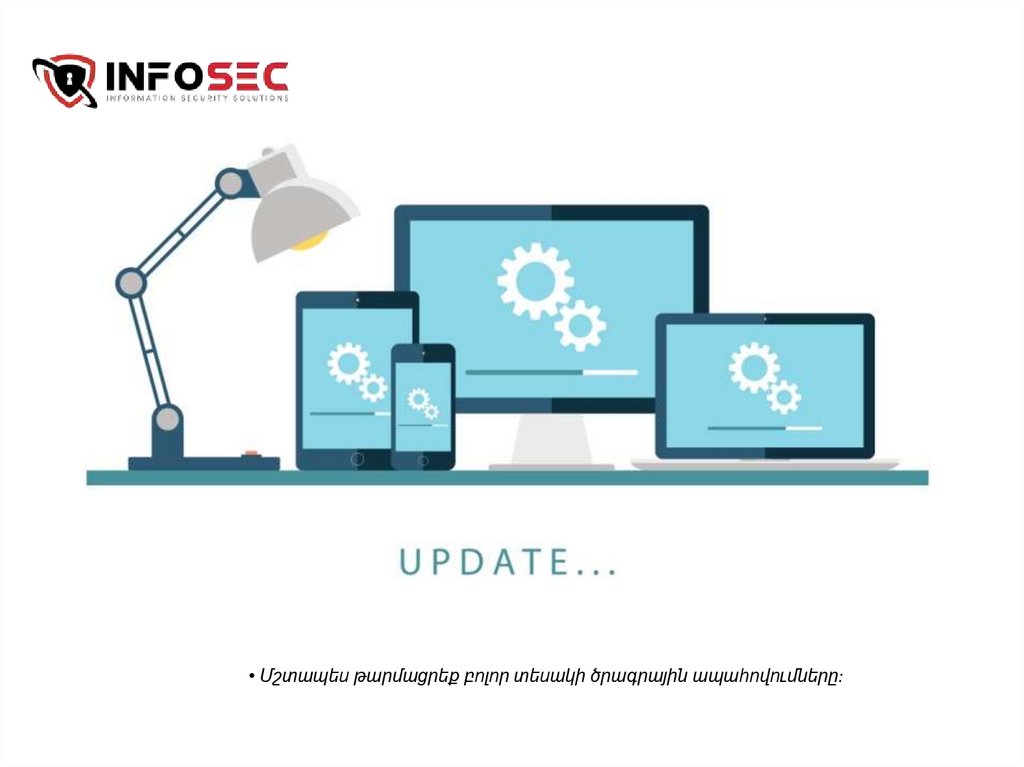 • Մշտապես թարմացրեք բոլոր տեսակի ծրագրային ապահովումները:6.
