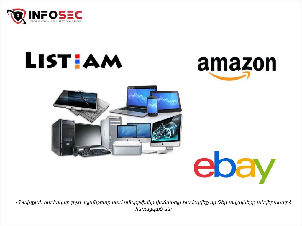 • Նախքան համակարգիչը, պլանշետը կամ սմարթֆոնը վաճառելը համոզվեք որ Ձեր տվյալները անվերադարձհեռացված են: