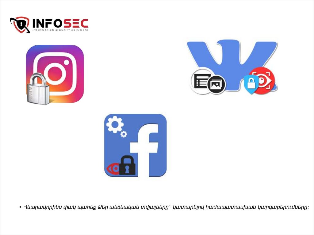 • Հնարավորինս փակ պահեք Ձեր անձնական տվյալները՝ կատարելով համապատասխան կարգաբերումները:58.
