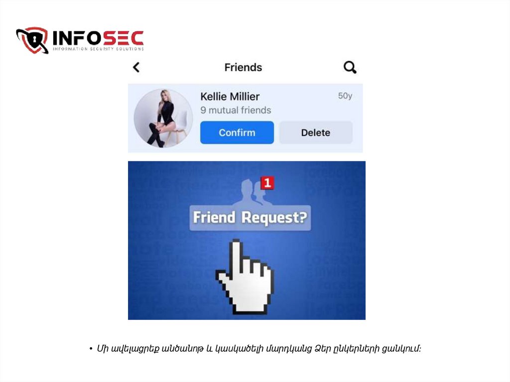 • Մի ավելացրեք անծանոթ և կասկածելի մարդկանց Ձեր ընկերների ցանկում:59.
