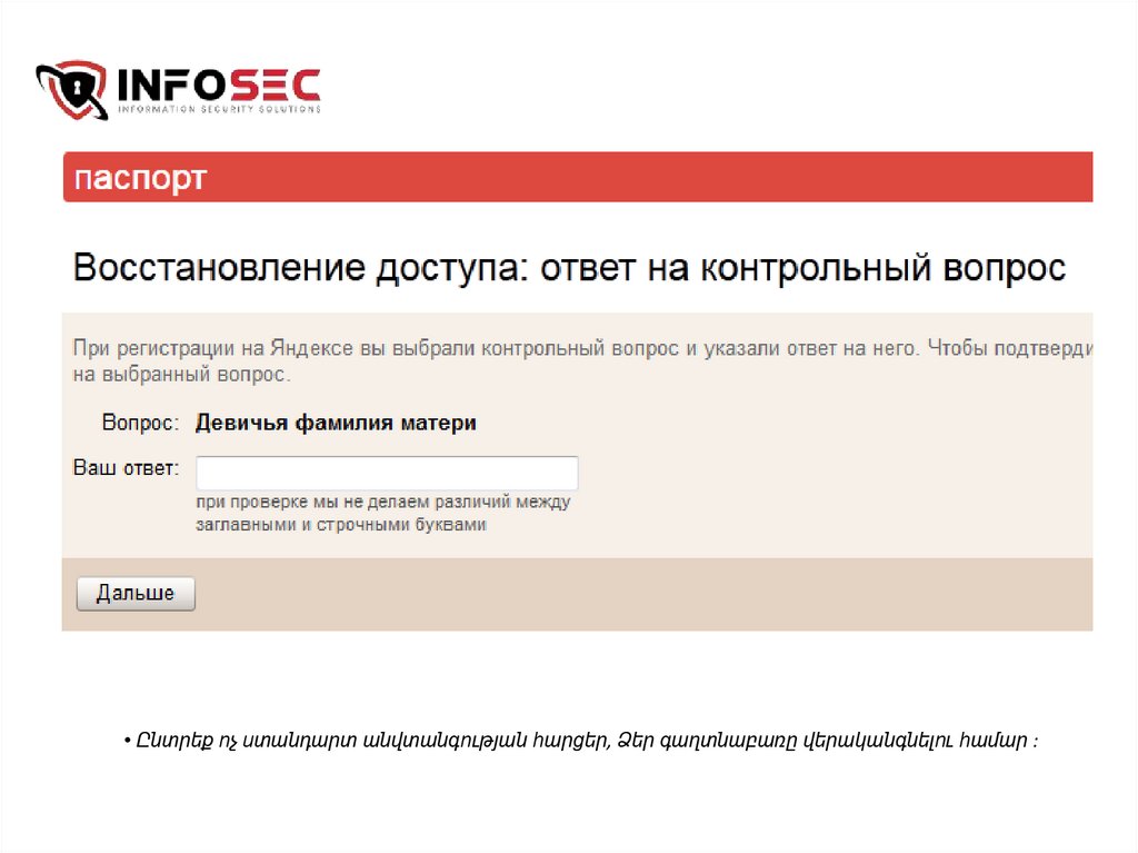 • Ընտրեք ոչ ստանդարտ անվտանգության հարցեր, Ձեր գաղտնաբառը վերականգնելու համար :10.