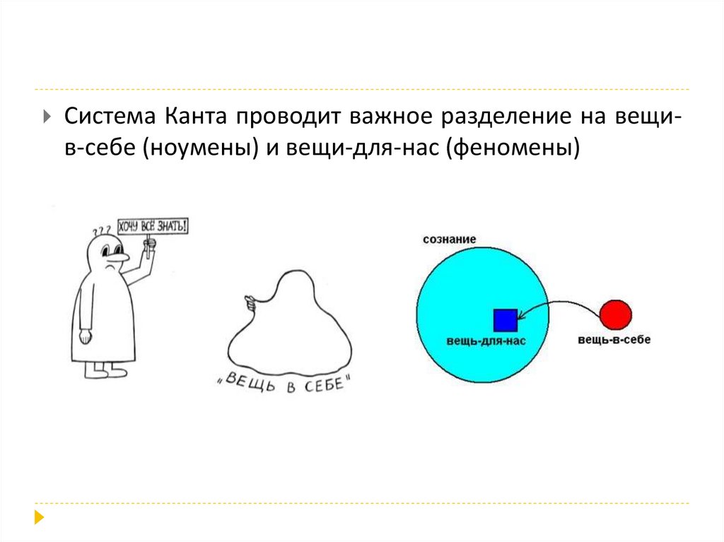 Система Канта проводит важное разделение на вещи-в-себе (ноумены) и вещи-для-нас (феномены)