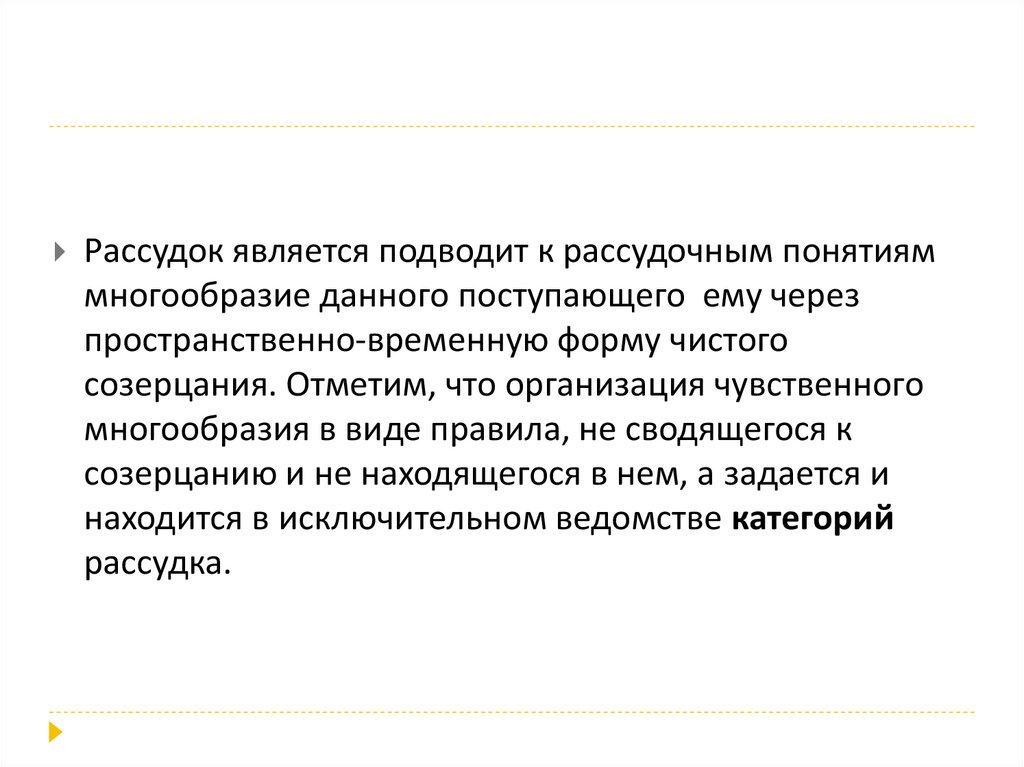 Рассудок является подводит к рассудочным понятияммногообразие данного поступающего ему через