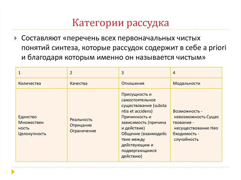 Категории рассудкаСоставляют «перечень всех первоначальных чистых