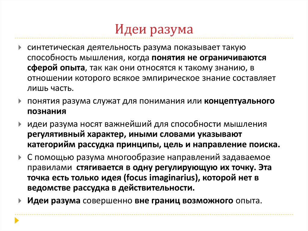 идеи разума носят важнейший для способности мышления