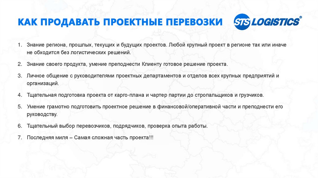 1. Знание региона, прошлых, текущих и будущих проектов. Любой крупный проект в регионе так или иначене обходится без логистических решений.