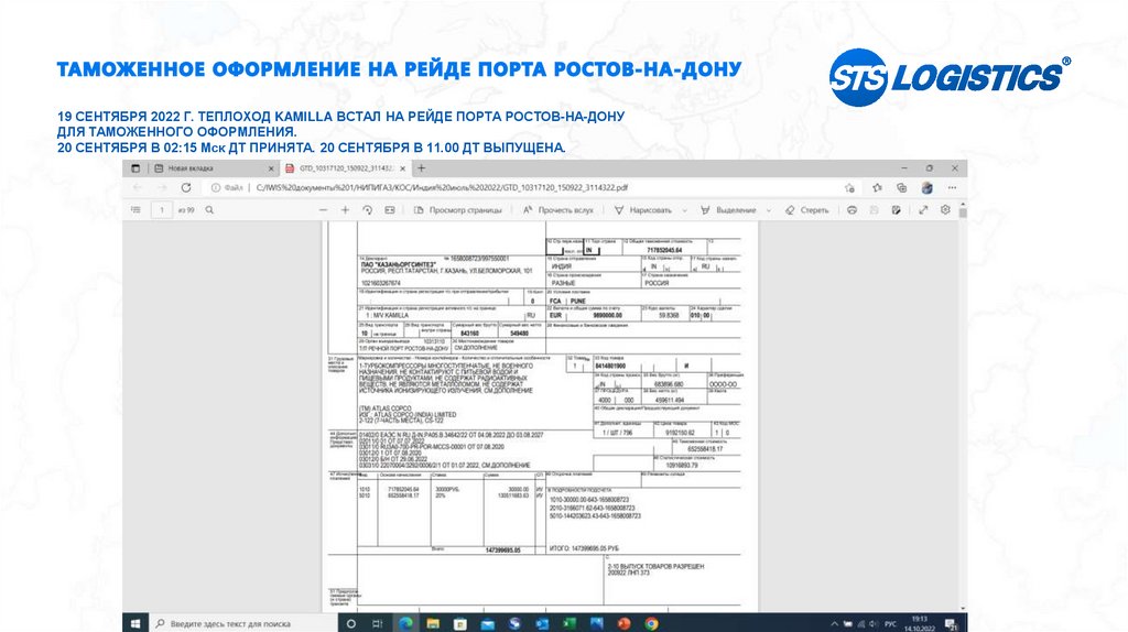 19 СЕНТЯБРЯ 2022 Г. ТЕПЛОХОД KAMILLA ВСТАЛ НА РЕЙДЕ ПОРТА РОСТОВ-НА-ДОНУДЛЯ ТАМОЖЕННОГО ОФОРМЛЕНИЯ.