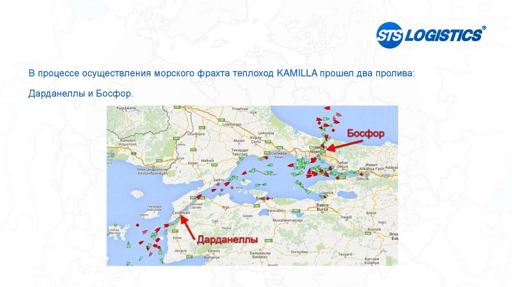 В процессе осуществления морского фрахта теплоход KAMILLA прошел два пролива:Дарданеллы и Босфор.