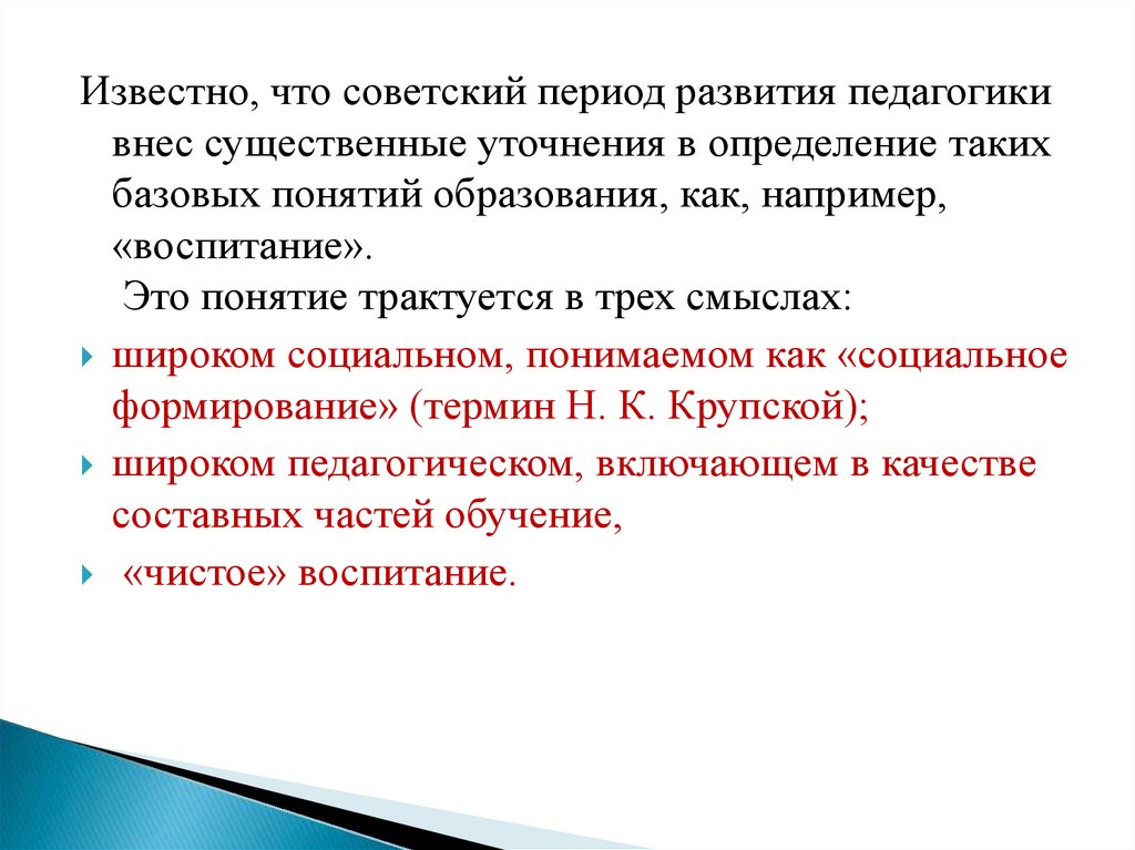 Известно, что советский период развития педагогикивнес существенные уточнения в определение таких