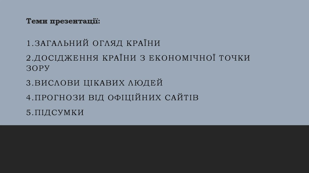 Теми презентації:1.ЗАГАЛЬНИЙ ОГЛЯД КРАЇНИ