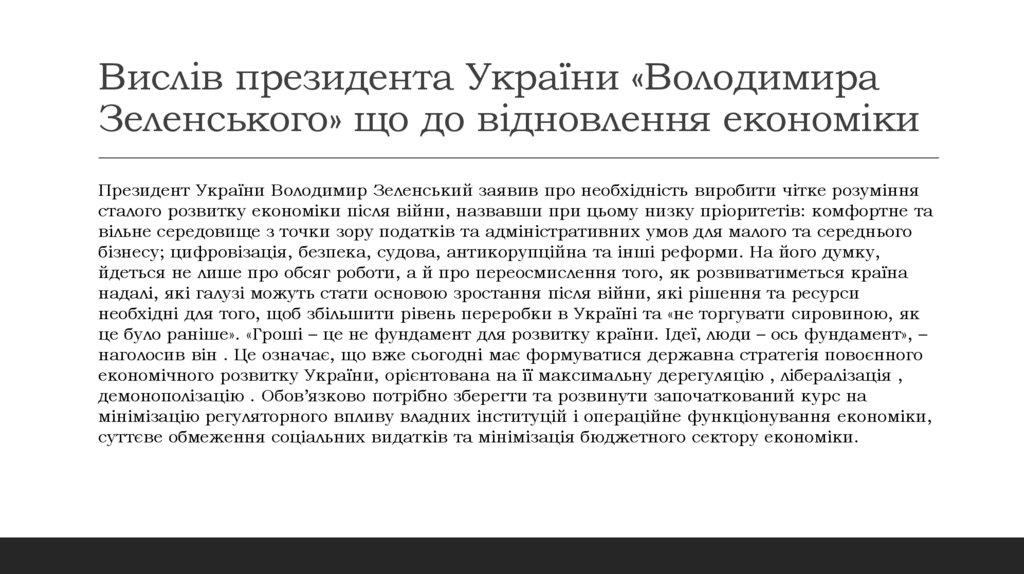 Вислів президента України «ВолодимираЗеленського» що до відновлення економіки