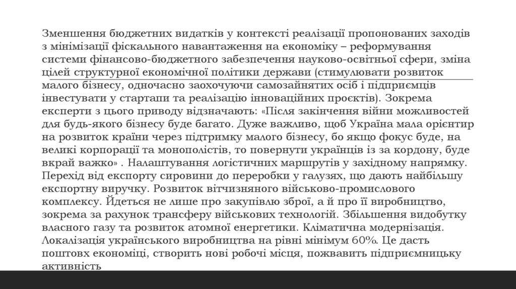 суттєве обмеження соціальних видатків та мінімізація бюджетного сектору економіки.
