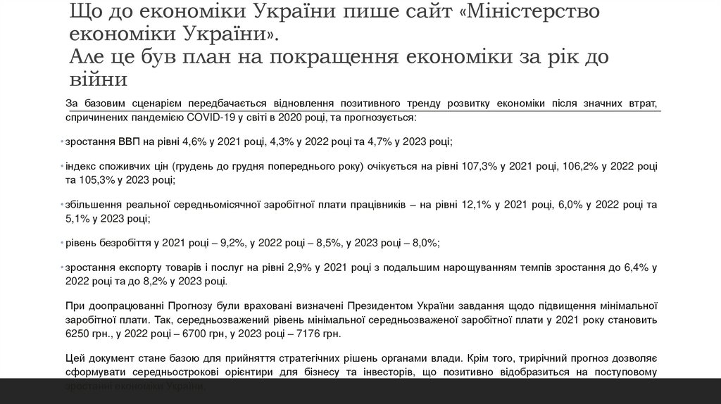 При доопрацюванні Прогнозу були враховані визначені Президентом України завдання щодо підвищення мінімальної