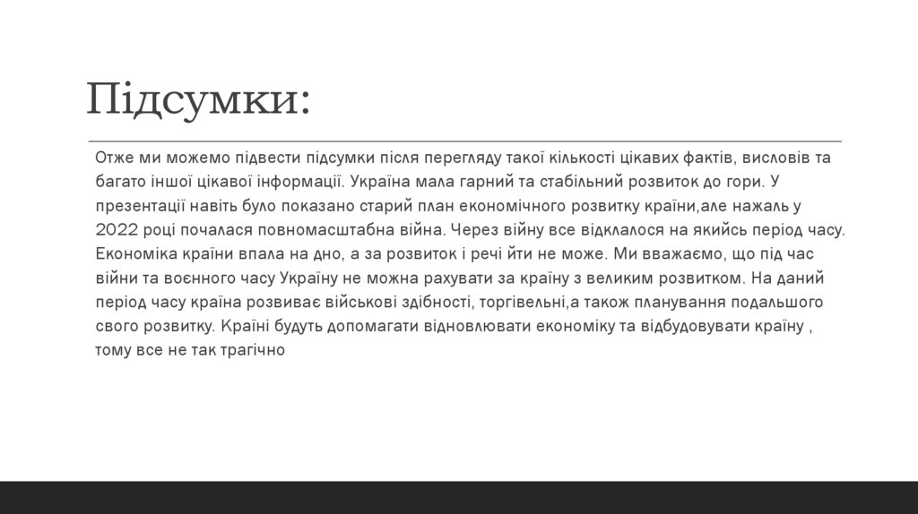 багато іншої цікавої інформації. Україна мала гарний та стабільний розвиток до гори. У