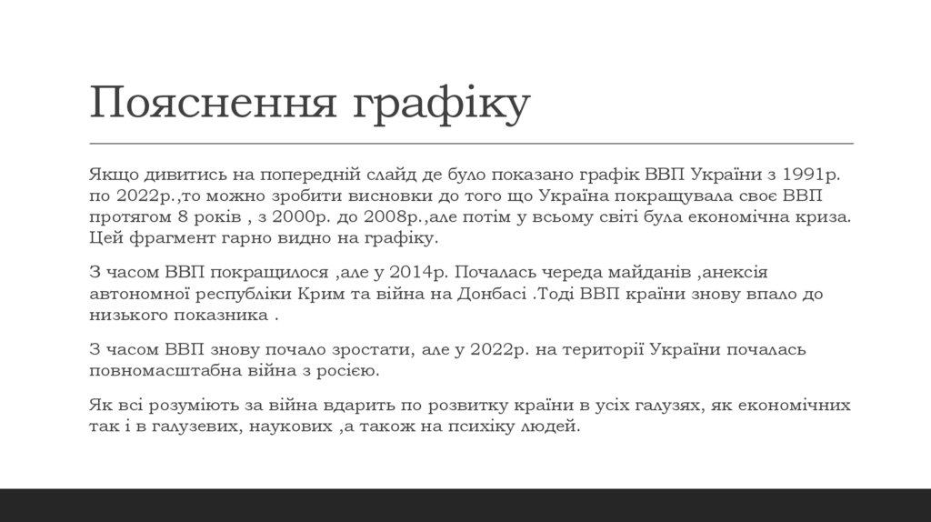Пояснення графікуЯкщо дивитись на попередній слайд де було показано графік ВВП України з 1991р.