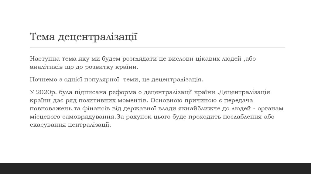 Тема децентралізаціїНаступна тема яку ми будем розглядати це вислови цікавих людей ,або