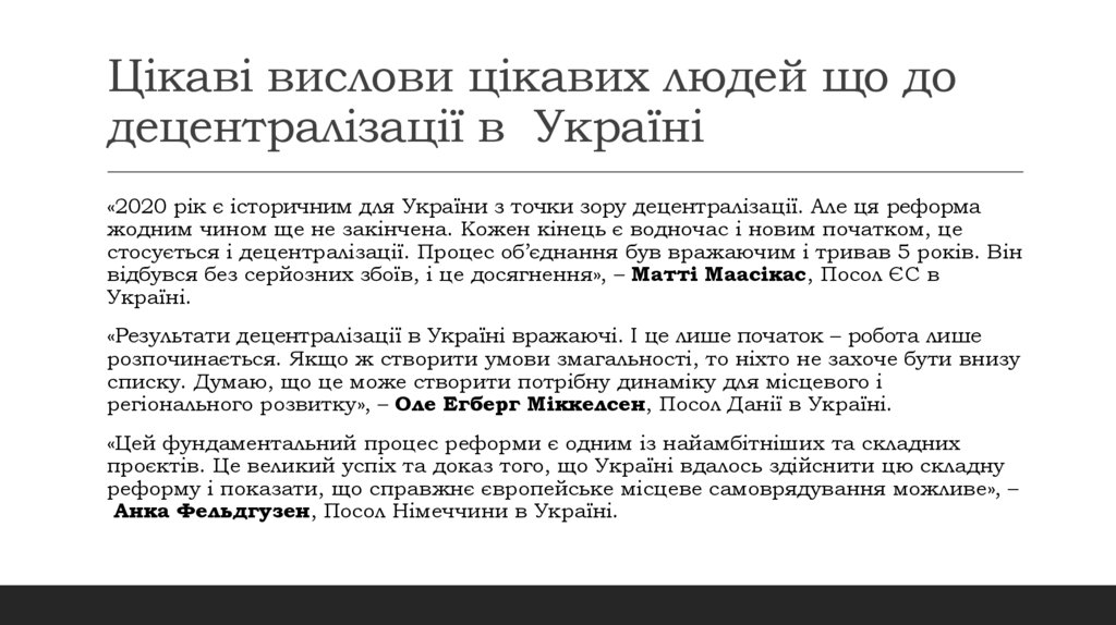 Цікаві вислови цікавих людей що додецентралізації в Україні