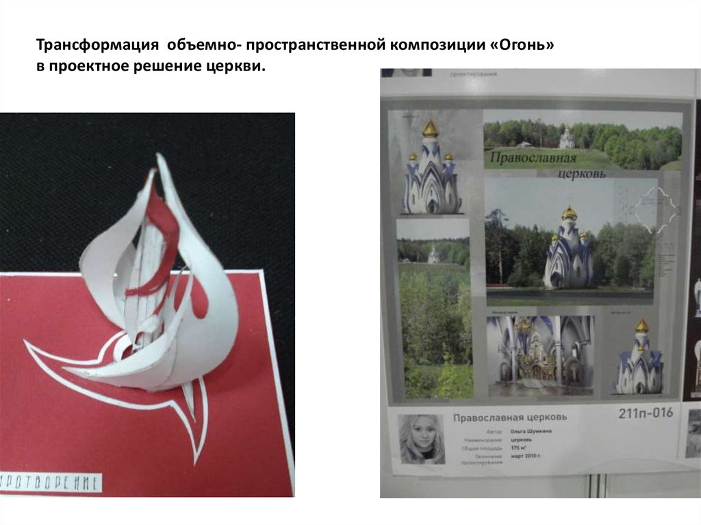 Трансформация объемно- пространственной композиции «Огонь»в проектное решение церкви.