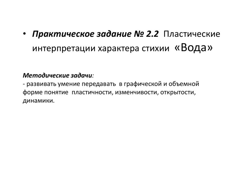 • Практическое задание № 2.2 Пластическиеинтерпретации характера стихии «Вода»