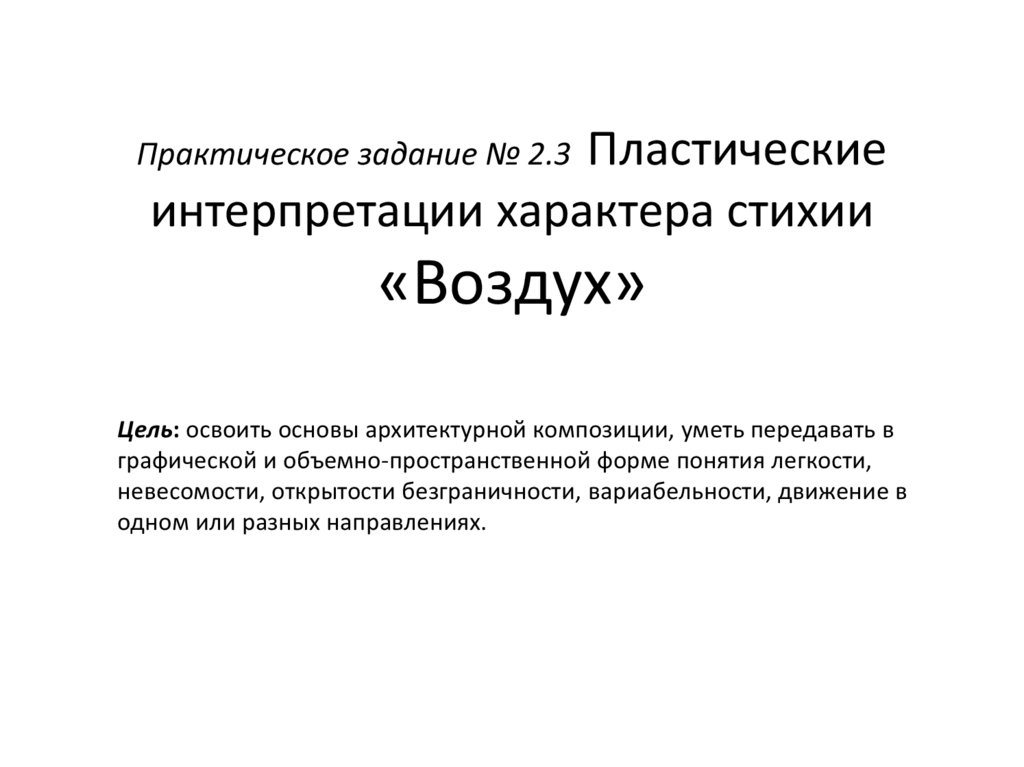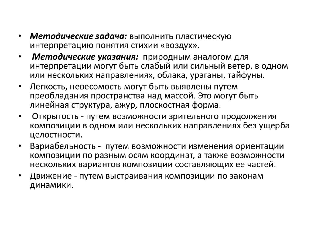 • Методические задача: выполнить пластическуюинтерпретацию понятия стихии «воздух».