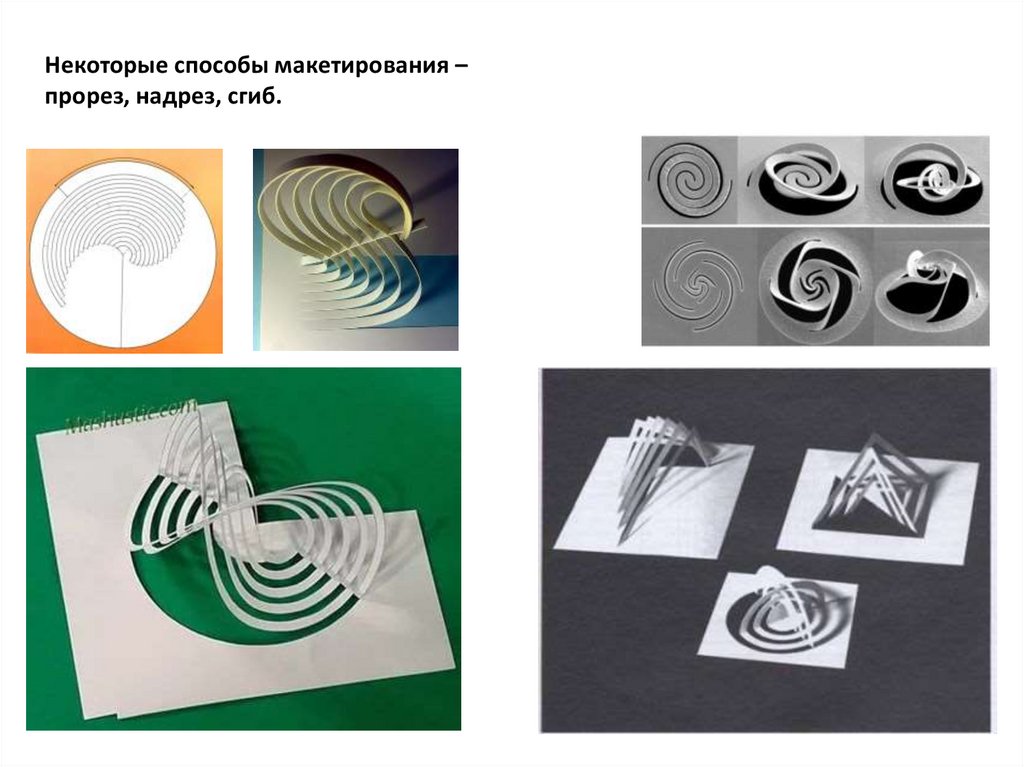 Некоторые способы макетирования –прорез, надрез, сгиб.