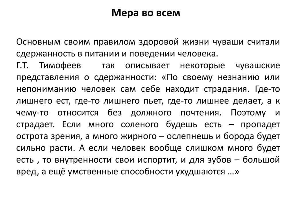 Мера во всемОсновным своим правилом здоровой жизни чуваши считали