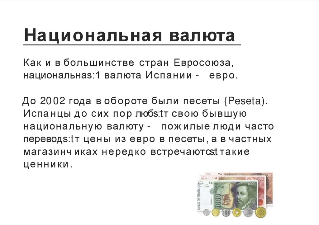Д о 20 02 года в обор оте были песеты {Peseta).