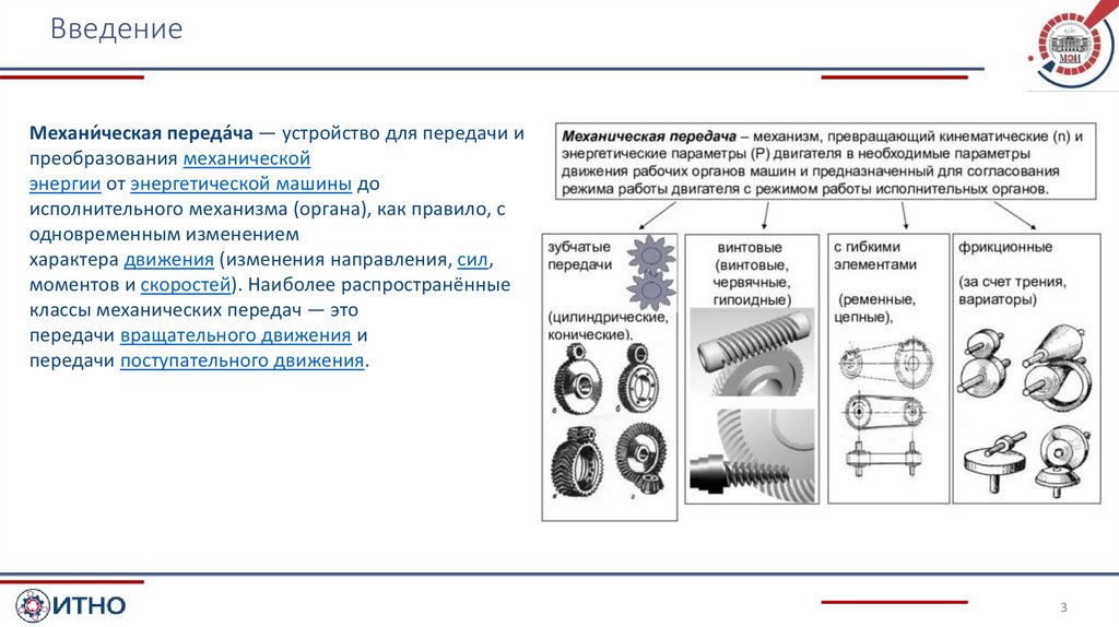 ВведениеМехани́ ческая переда́ча — устройство для передачи и