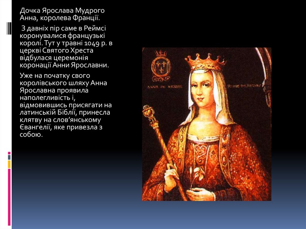Дочка Ярослава МудрогоАнна, королева Франції.