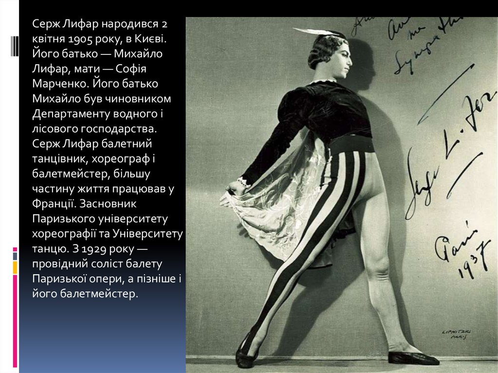 Серж Лифар народився 2квітня 1905 року, в Києві.
