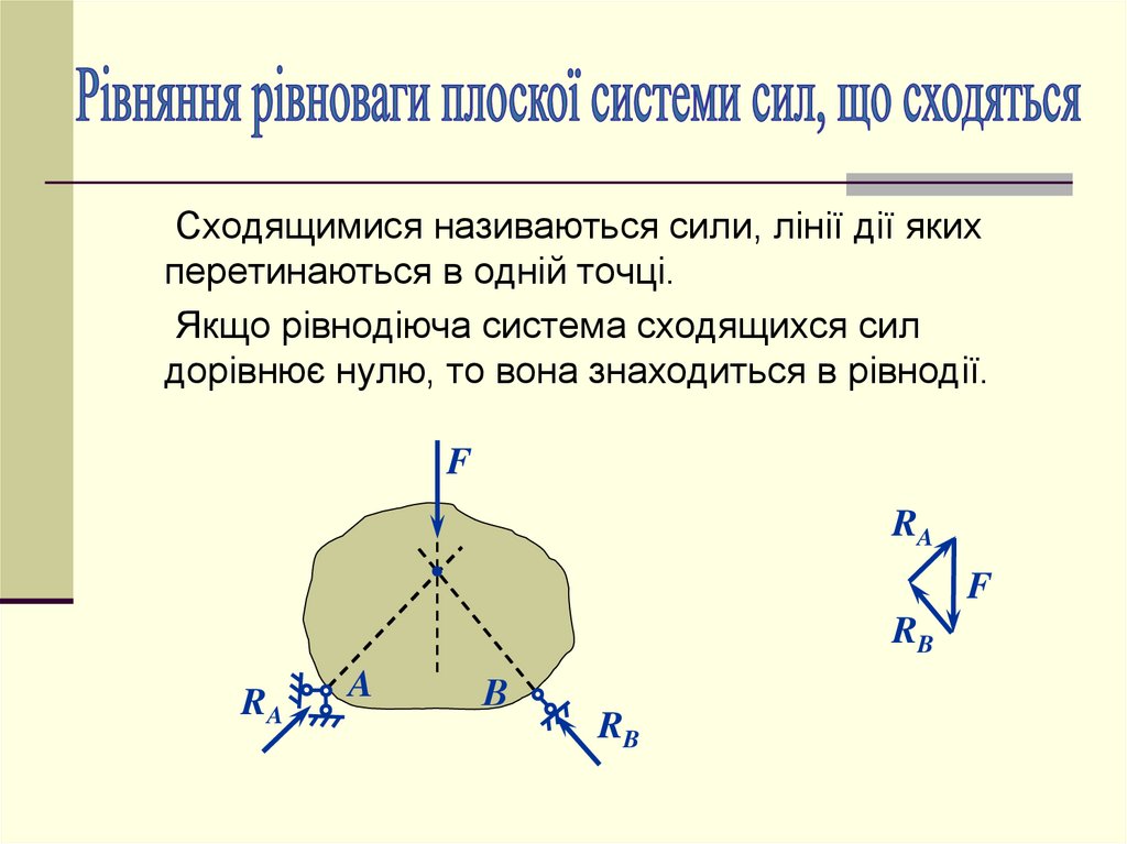 Сходящимися називаються сили, лінії дії якихперетинаються в одній точці.