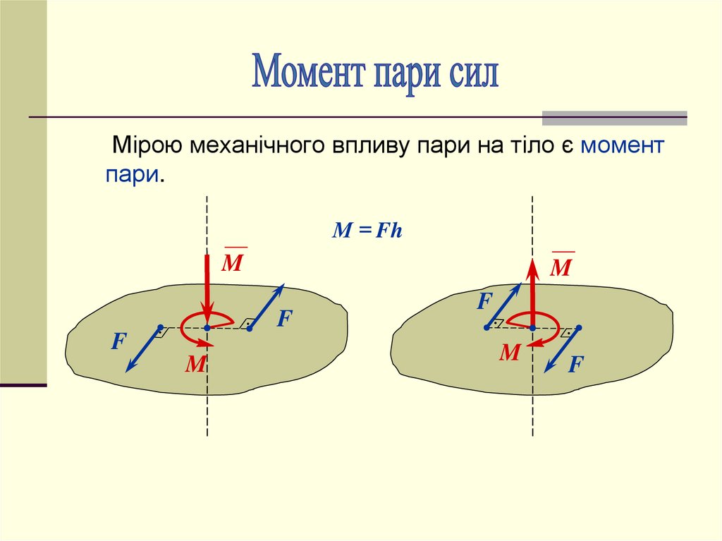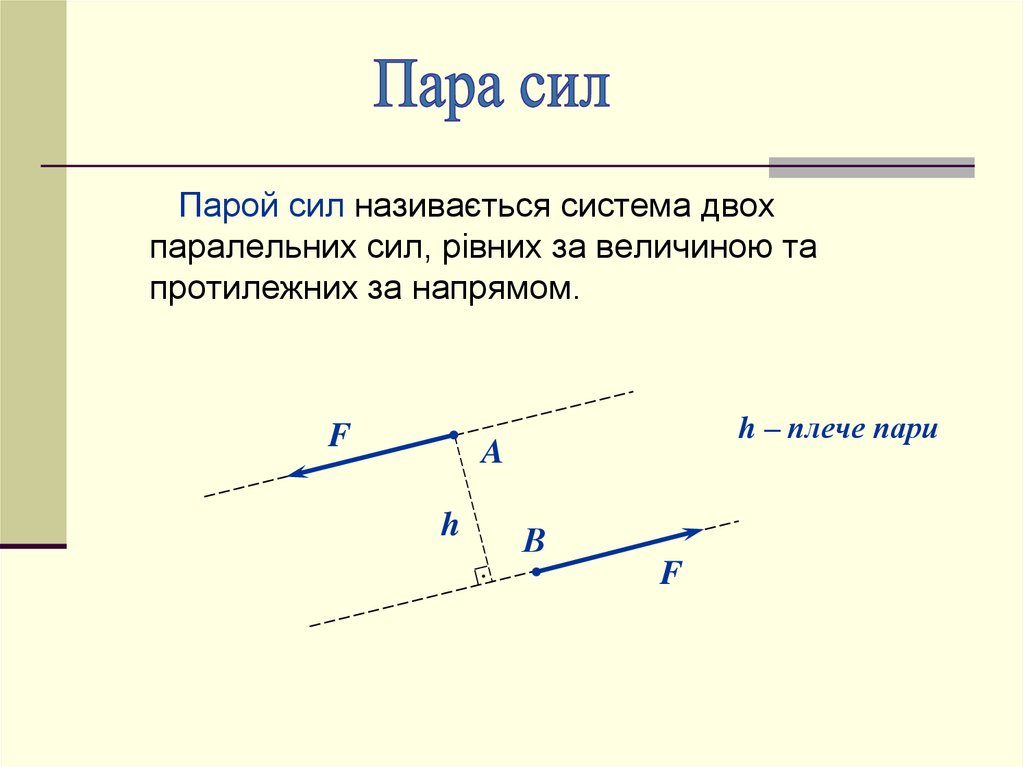 Парой сил називається система двохпаралельних сил, рівних за величиною та
