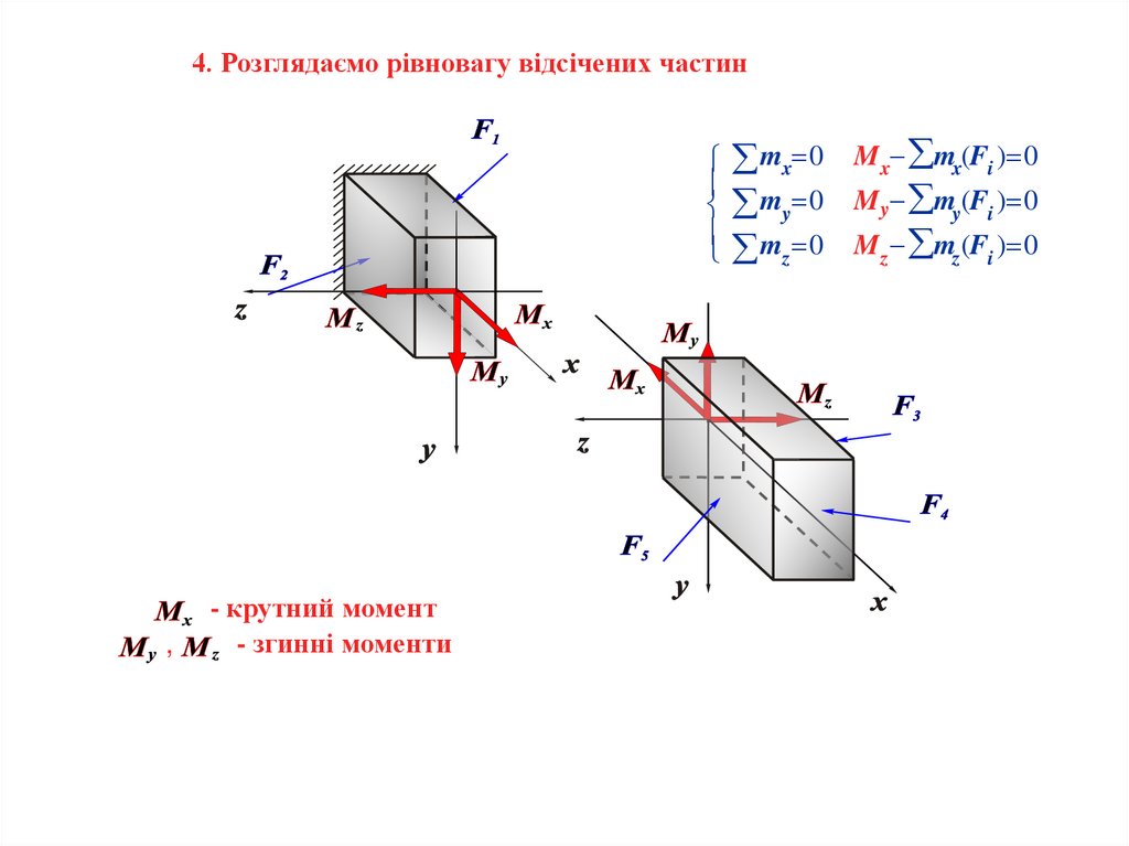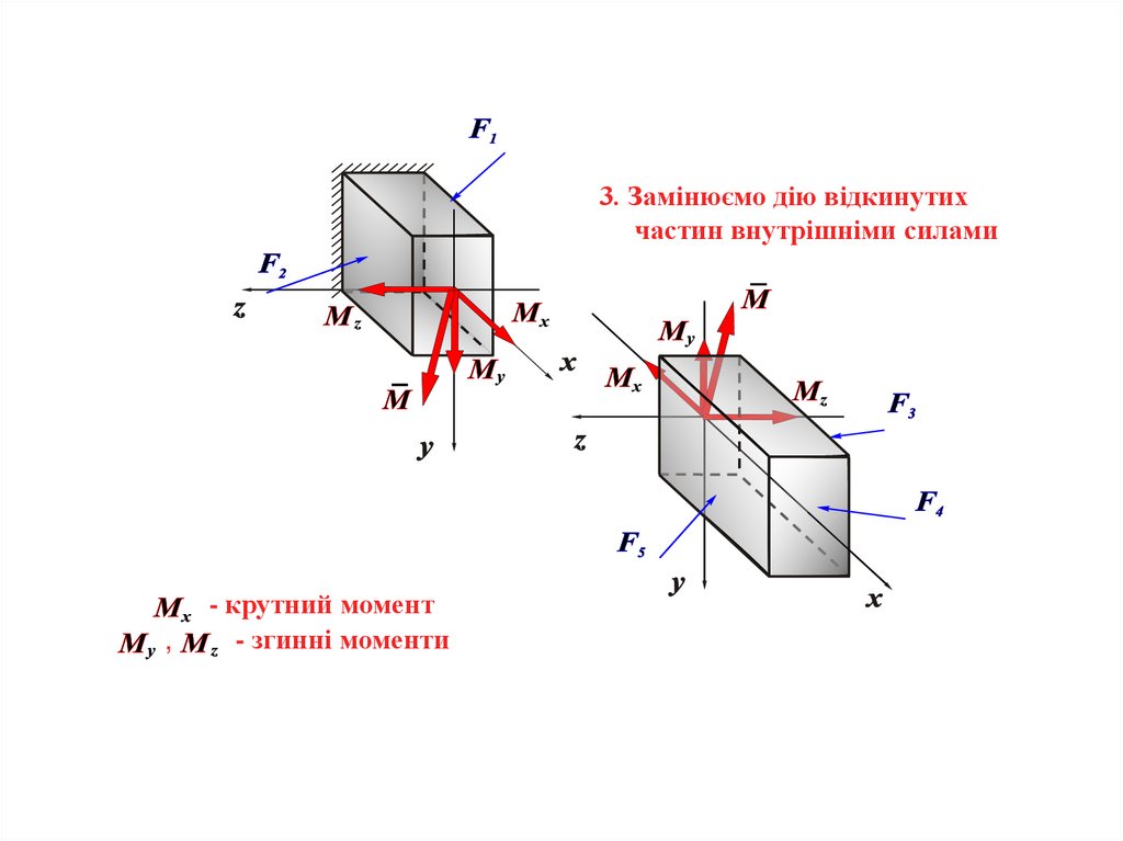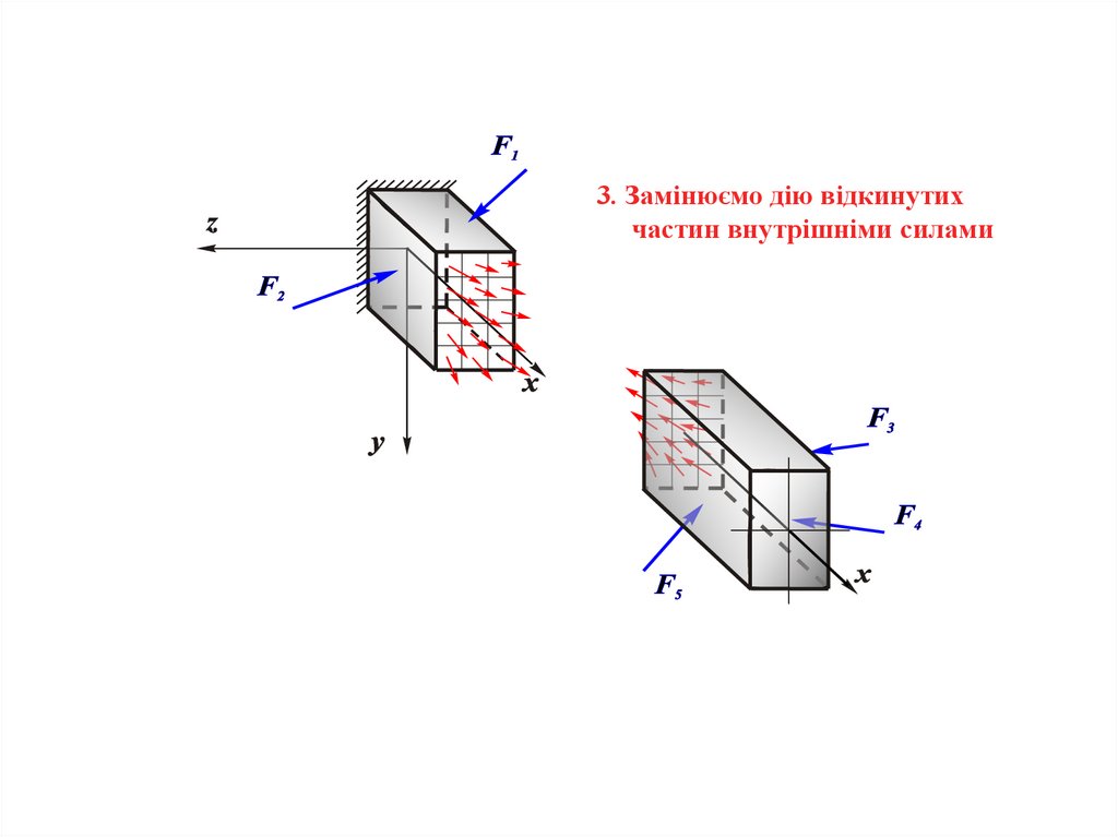 3. Замінюємо дію відкинутихчастин внутрішніми силами