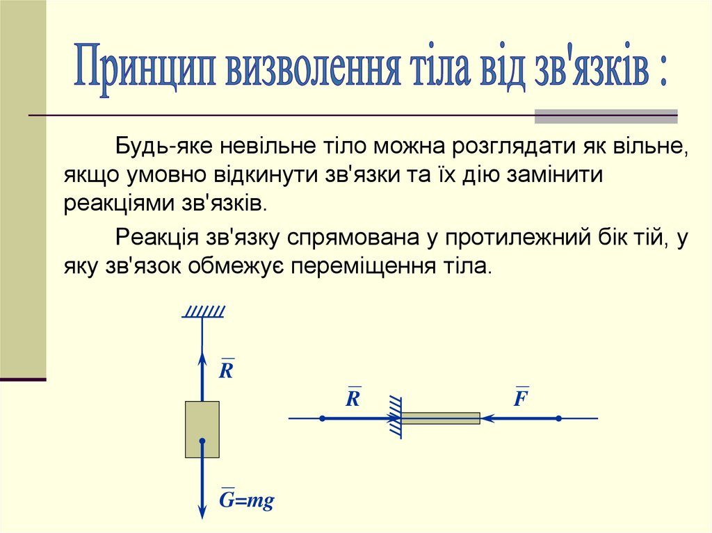 Будь-яке невільне тіло можна розглядати як вільне,якщо умовно відкинути зв'язки та їх дію замінити