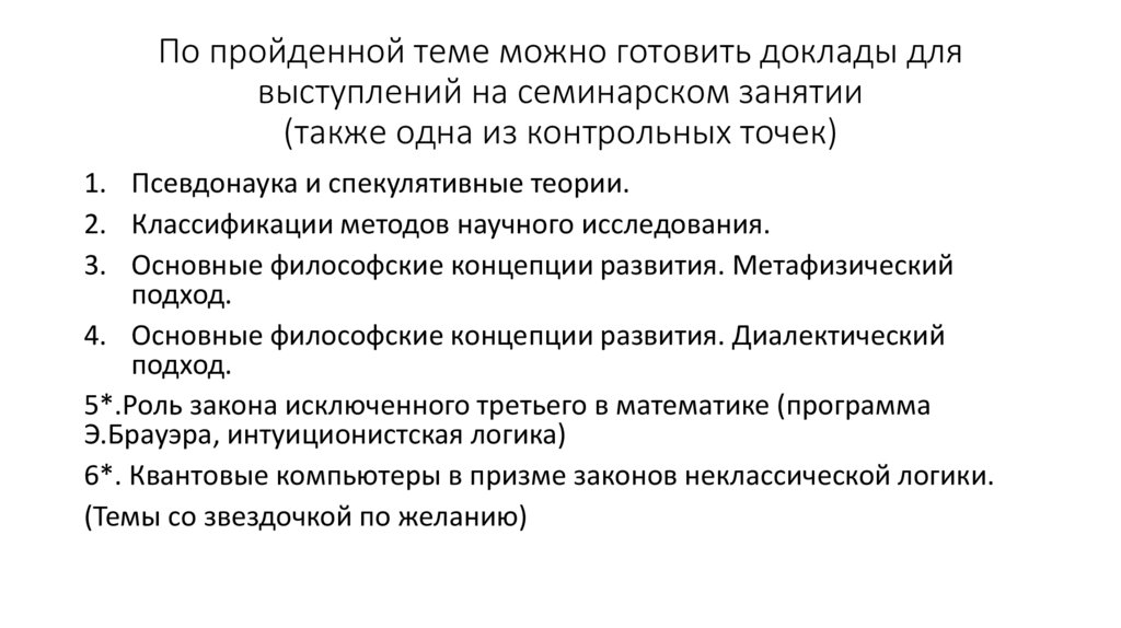 По пройденной теме можно готовить доклады длявыступлений на семинарском занятии