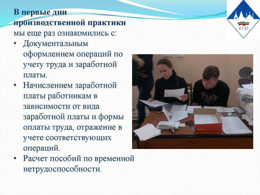 В первые днипроизводственной практики