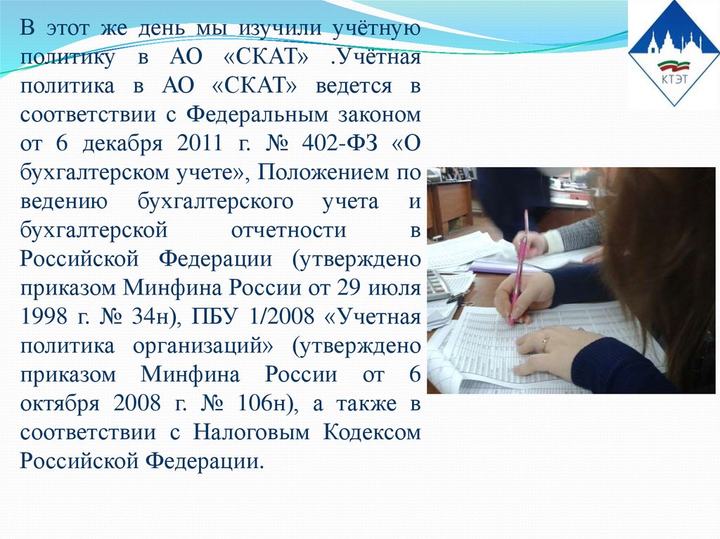 В этот же день мы изучили учётнуюполитику в АО «СКАТ» .Учётная