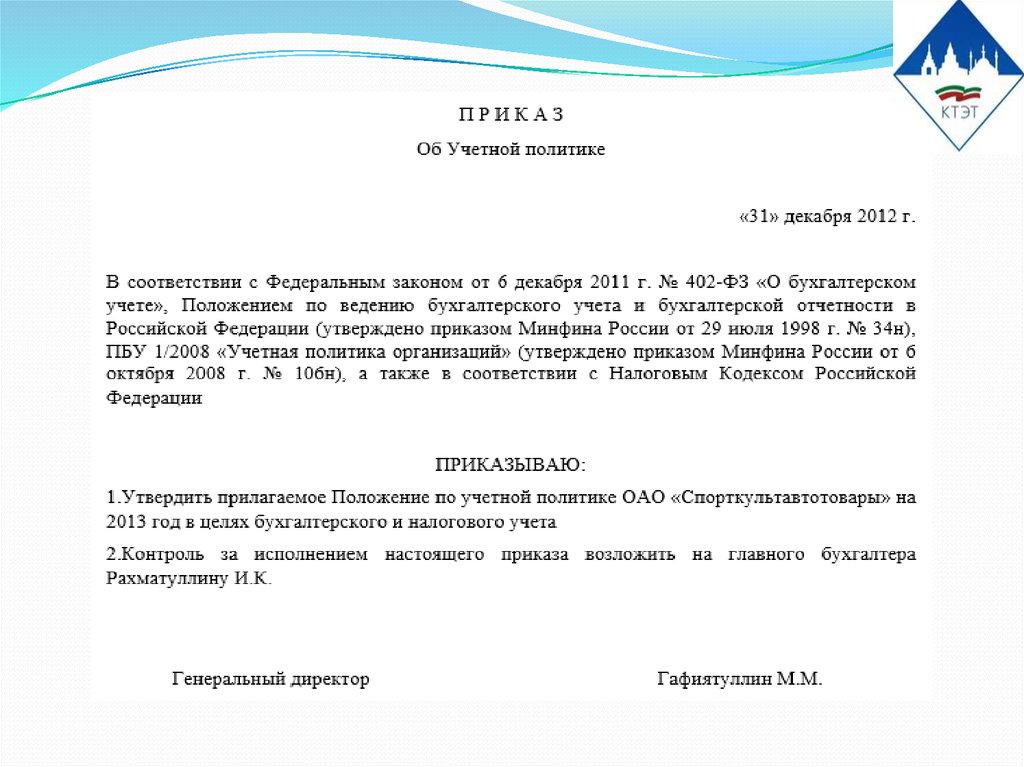 ведению бухгалтерского учета. На