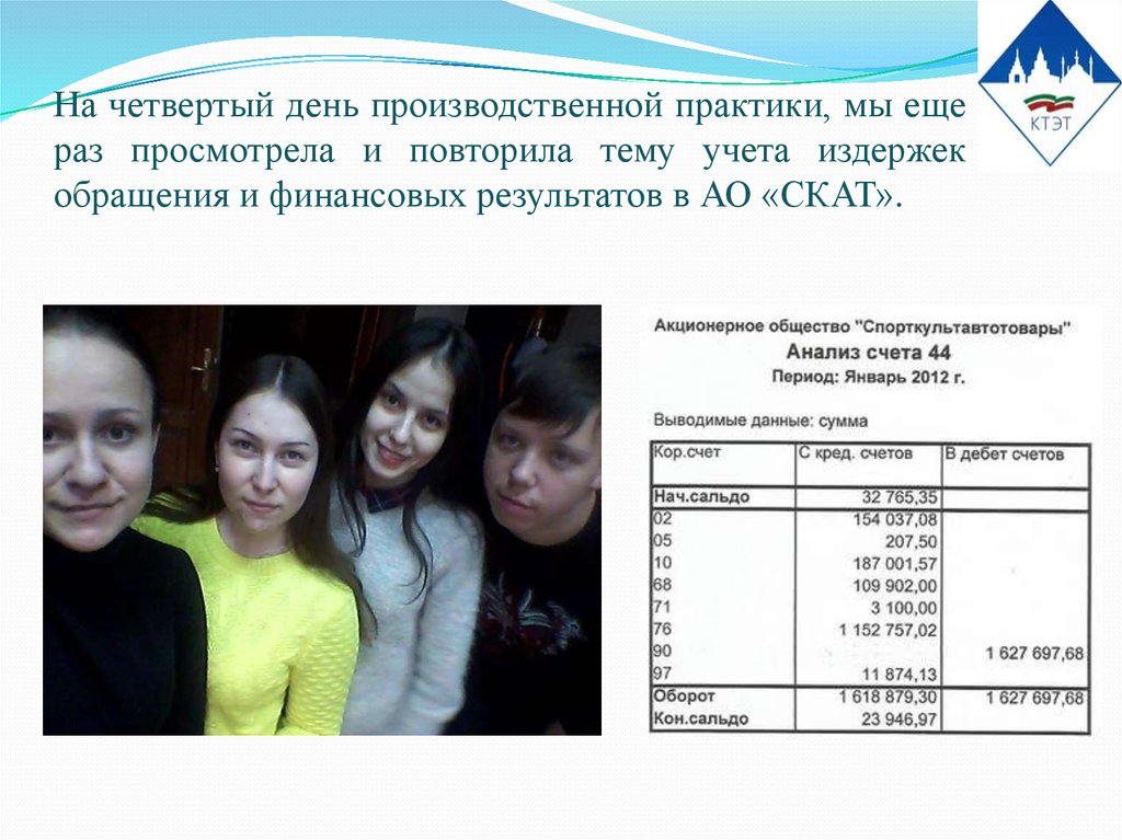 На четвертый день производственной практики, мы ещераз просмотрела и повторила тему учета издержек