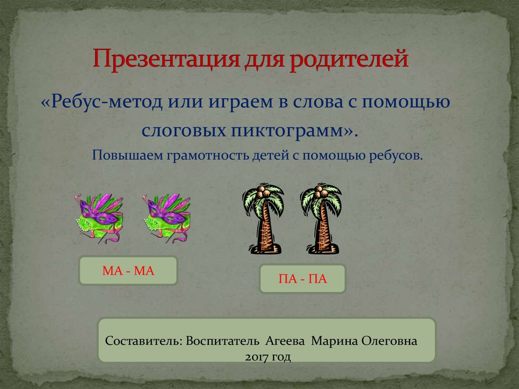 Ребус-метод или играем с помощью слоговых пиктограмм. Для родителей