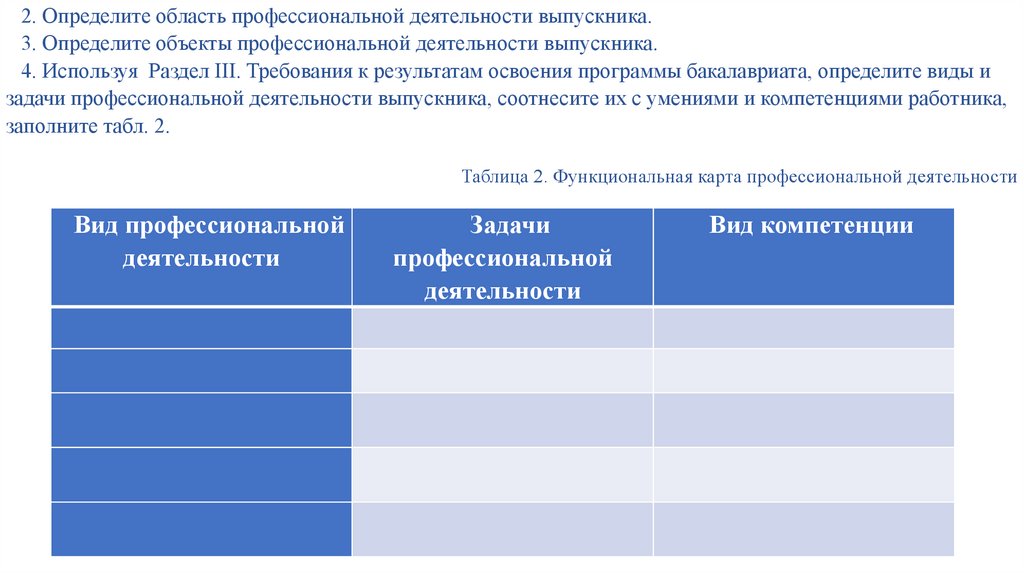 2. Определите область профессиональной деятельности выпускника.3. Определите объекты профессиональной деятельности выпускника.