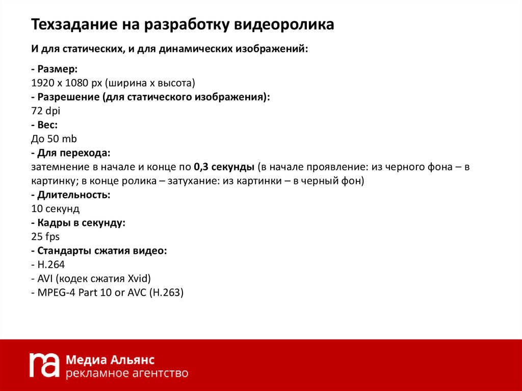 Техзадание на разработку видеоролика и для статических, и для динамических изображений