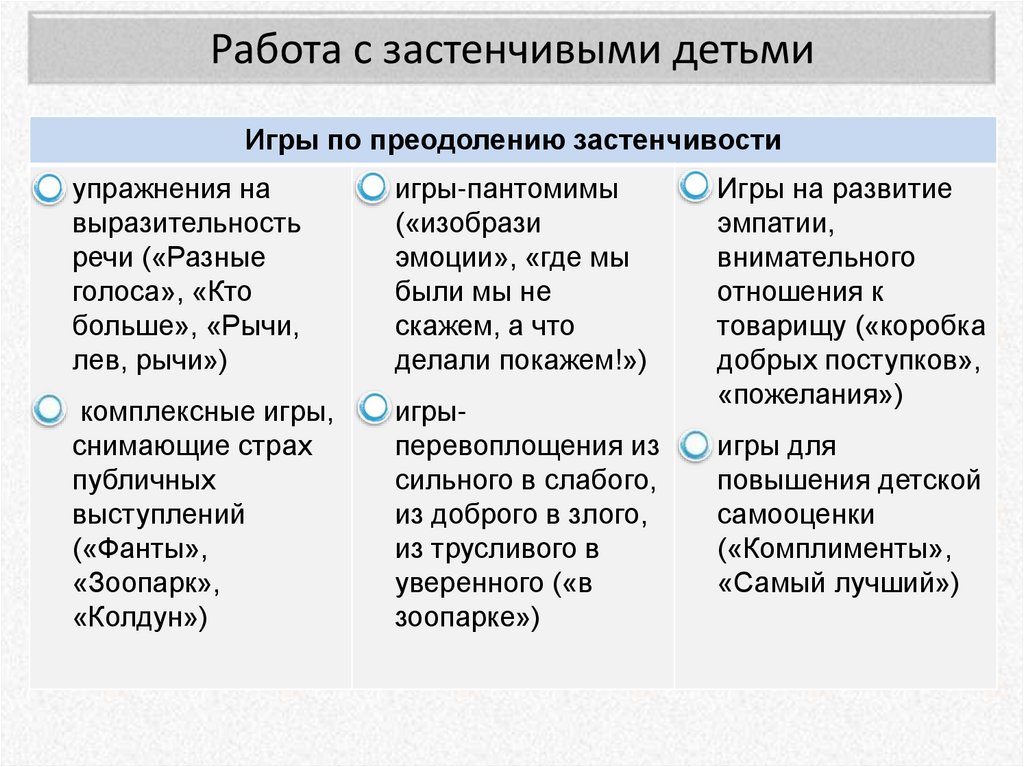 Работа с застенчивыми детьмиИгры по преодолению застенчивости
