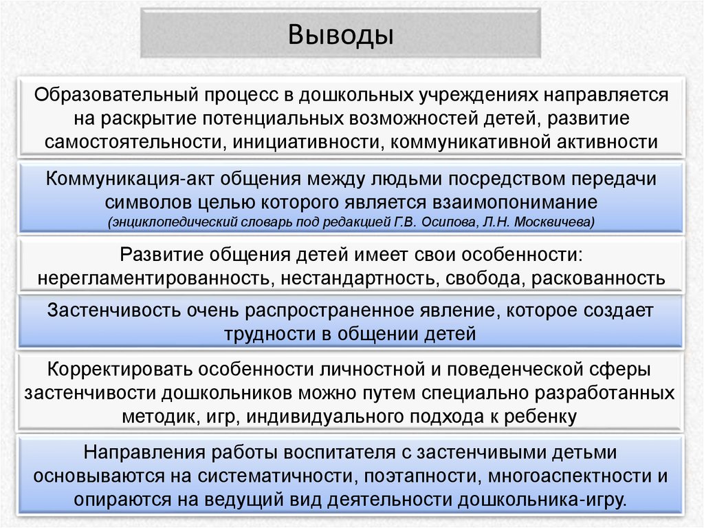ВыводыОбразовательный процесс в дошкольных учреждениях направляется
